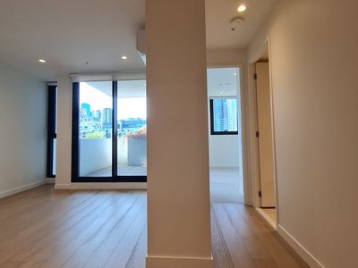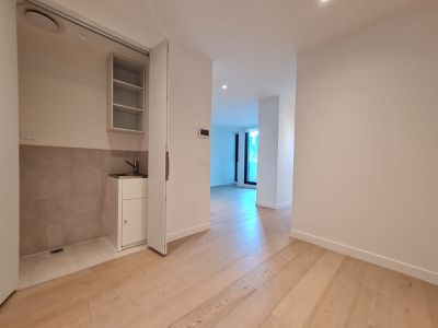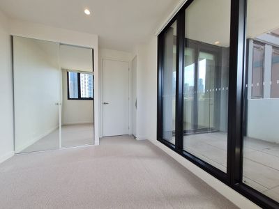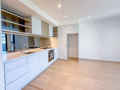 A stunning one-bedroom, one-bathroom apartment offering generous interiors and a spacious balcony. Designed with comfort and style in mind, the home features an expansive open-plan living and dining area. The kitchen is fitted with premium Miele appliances including a gas cooktop, fridge, and dishwasher, complemented by ample storage. Floorboards flow seamlessly throughout the living space, while the bedroom is finished with pure wool loop-pile carpet and a built-in robe.